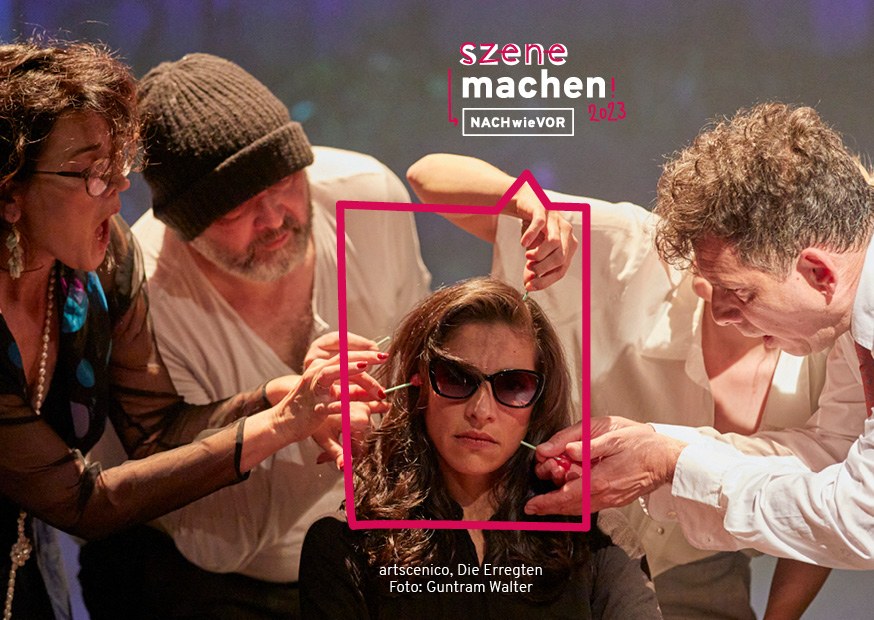 "Die Erregten“ ist ein Stück von Rolf Dennemann. Eine Produktion von artscenico in Koproduktion mit Theater im Depot. Gefördert durch Kulturbüro der Stadt Dortmund, Ministerium für Kultur und Wissenschaft des Landes Nordrhein-Westfalen und Fonds Darstellende Künste aus Mitteln der Beauftragten der Bundesregierung für Kultur und Medien im Rahmen von Neustart Kultur.